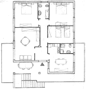 Quadrivano piano primo in villa. Ha due matrimoniali (letti singoli), una
